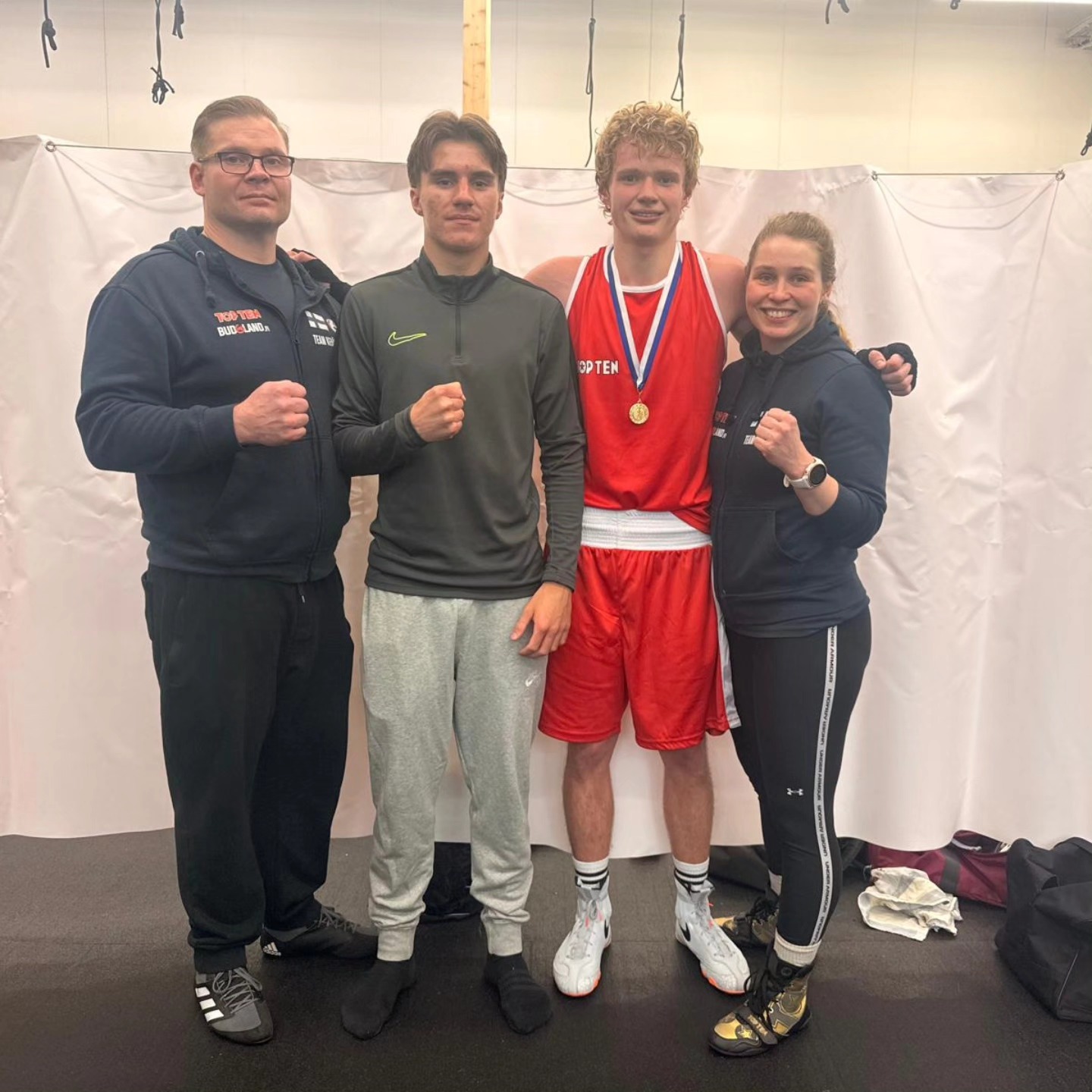 Matvii Hrysko (A-75kg) ja Veini Hintzell (A-65kg) iskivät nyrkkeilyvoitot 3.4.2026 Järvenpäässä. Valmentajina Jukka Saarinen ja Jenna Yläoutinen
